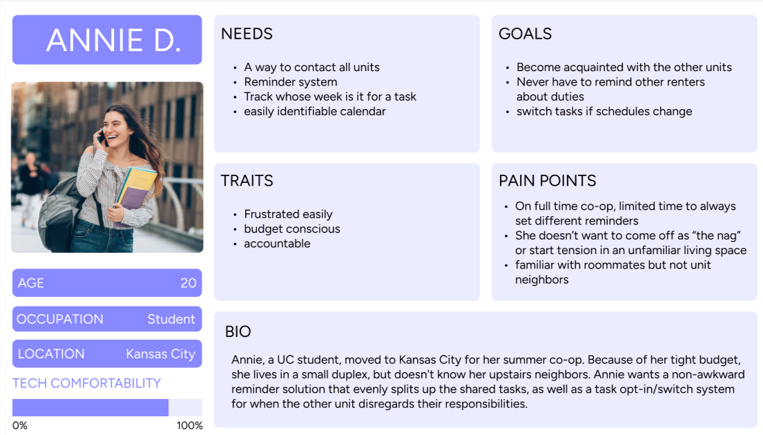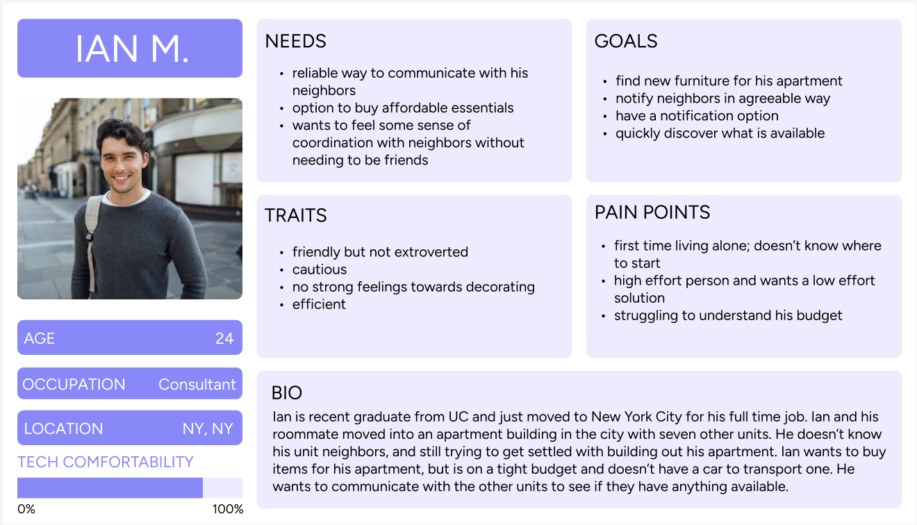 There are communication gaps found in shared spaces. Young renters living in shared buildings often lack simple, structured ways to communicate with neighbors they don’t know. This leads to frustration over uncompleted chores, underutilized shared resources, and missed opportunities for affordable, local item exchanges.